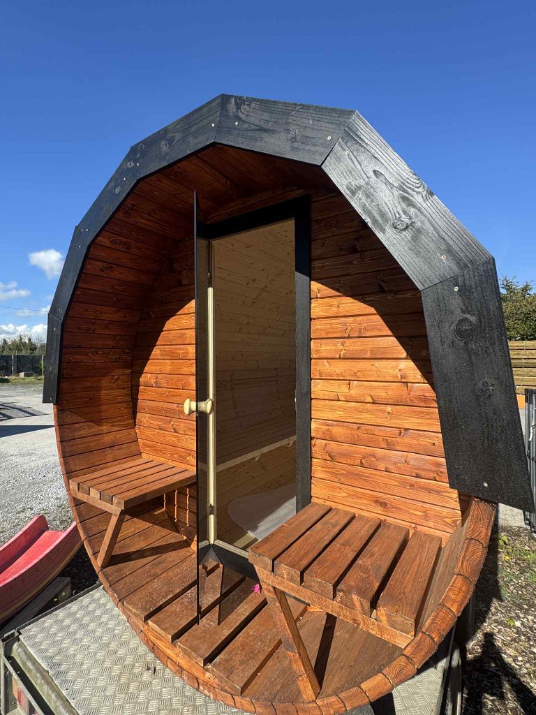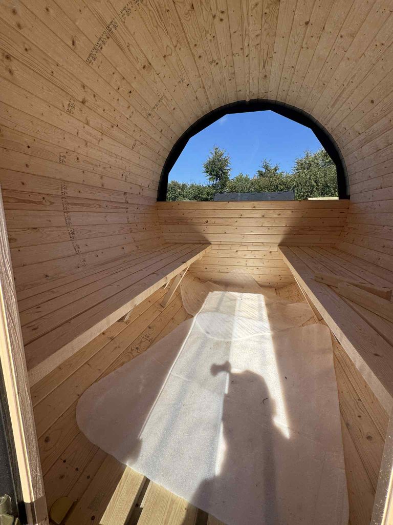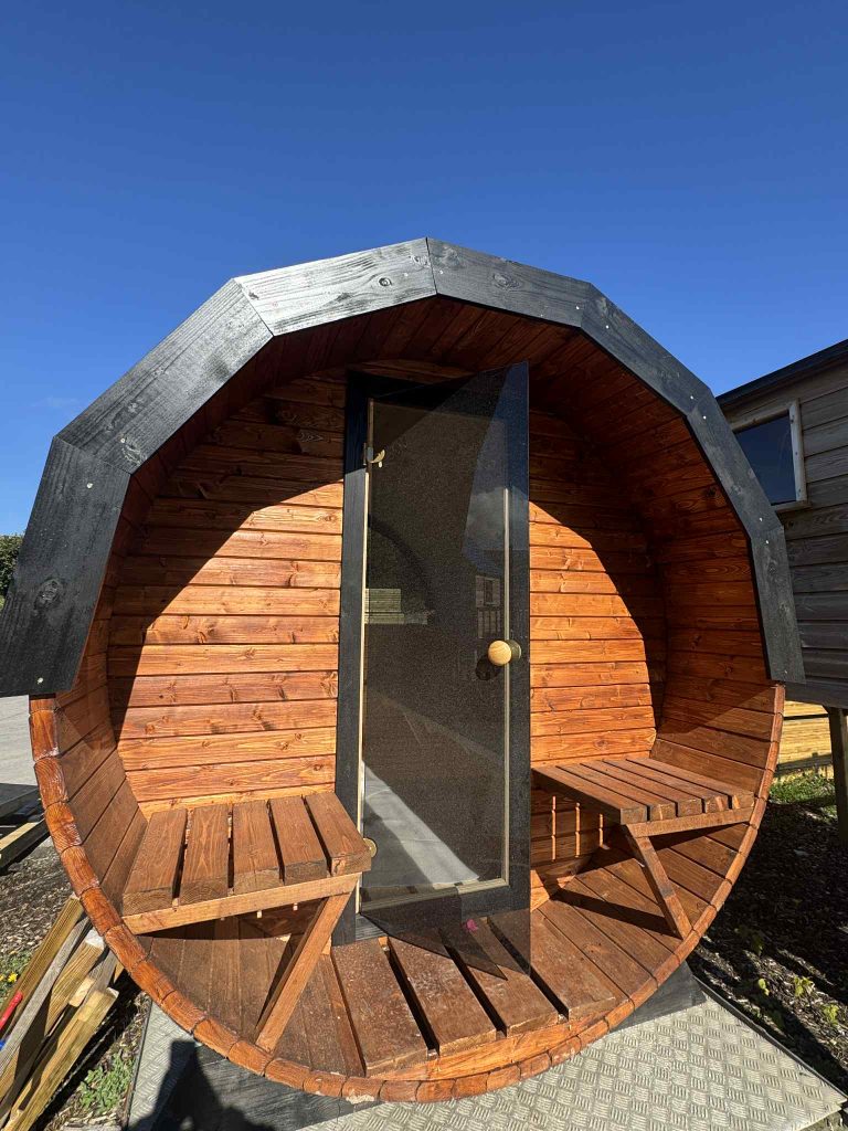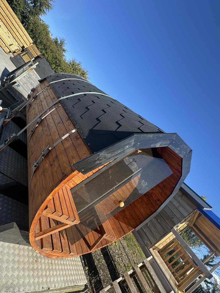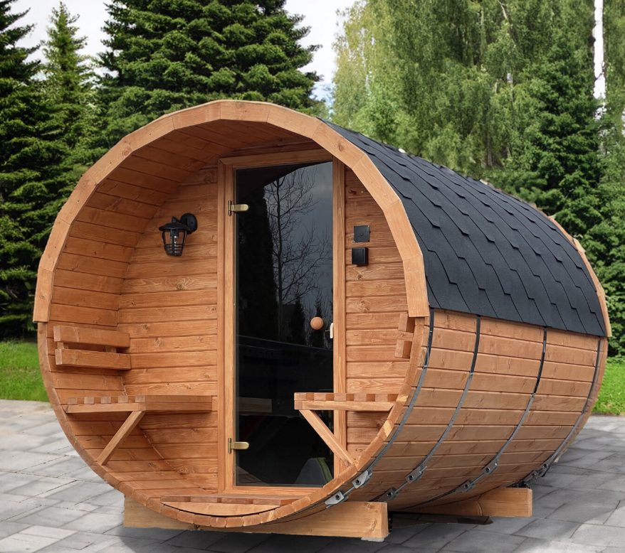Barrel Sauna with Porch Experience authentic wellness at home with our handcrafted barrel sauna with porch, built from premium Scandinavian spruce for durability and natural beauty. Designed for comfort and relaxation, this sauna is perfect for gatherings with family or friends.